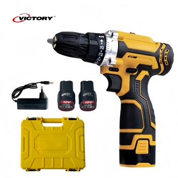 Ensemble de perceuse électrique portable sans fil 12V au lithium brossé deux batteries et un chargeur pour un usage domestique
